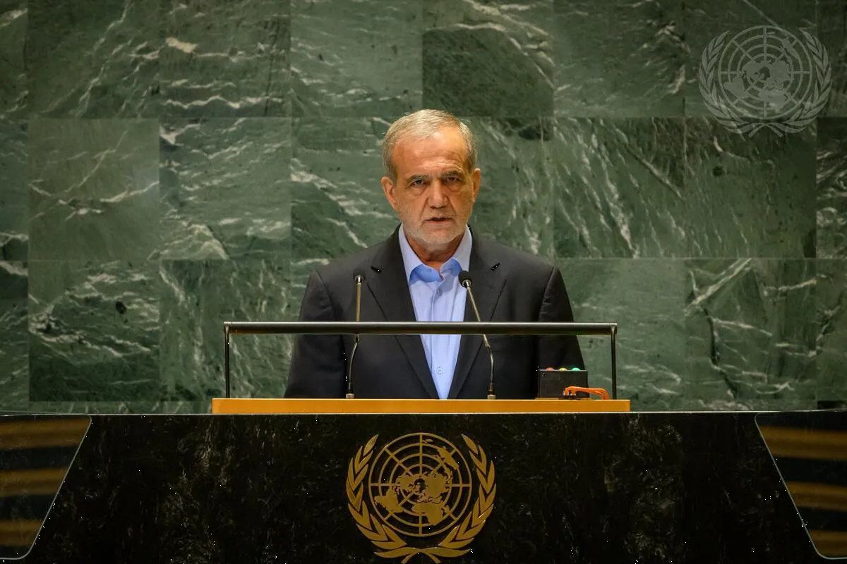 Iran’s President Pezeshkian called the assassination of Khamenei a “declaration of war against Muslims.” Credit: UN Photo/Loey Felipe